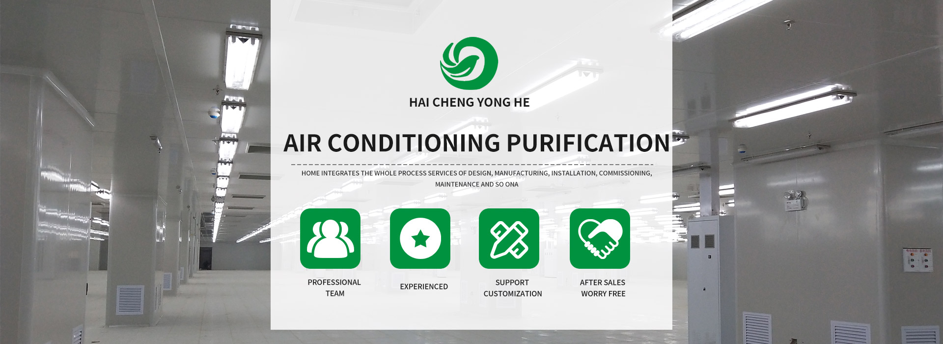 Dongguan Haicheng Yonghe air conditioning purification technology Co., Ltd. is a company integrating the whole process of design, manufacturing, installation, commissioning, maintenance and other services. It wholeheartedly provides various purification products of different specifications for the pharmaceutical industry, medical and health (hospital clean operating room, sterile ward), biological products, health food, cosmetics, electronics, microelectronics industry, circuit board and other fields, and provides customers with various purification grades Specialized companies for air purification, central air conditioning and supporting electromechanical installation projects of different types and special requirements.
